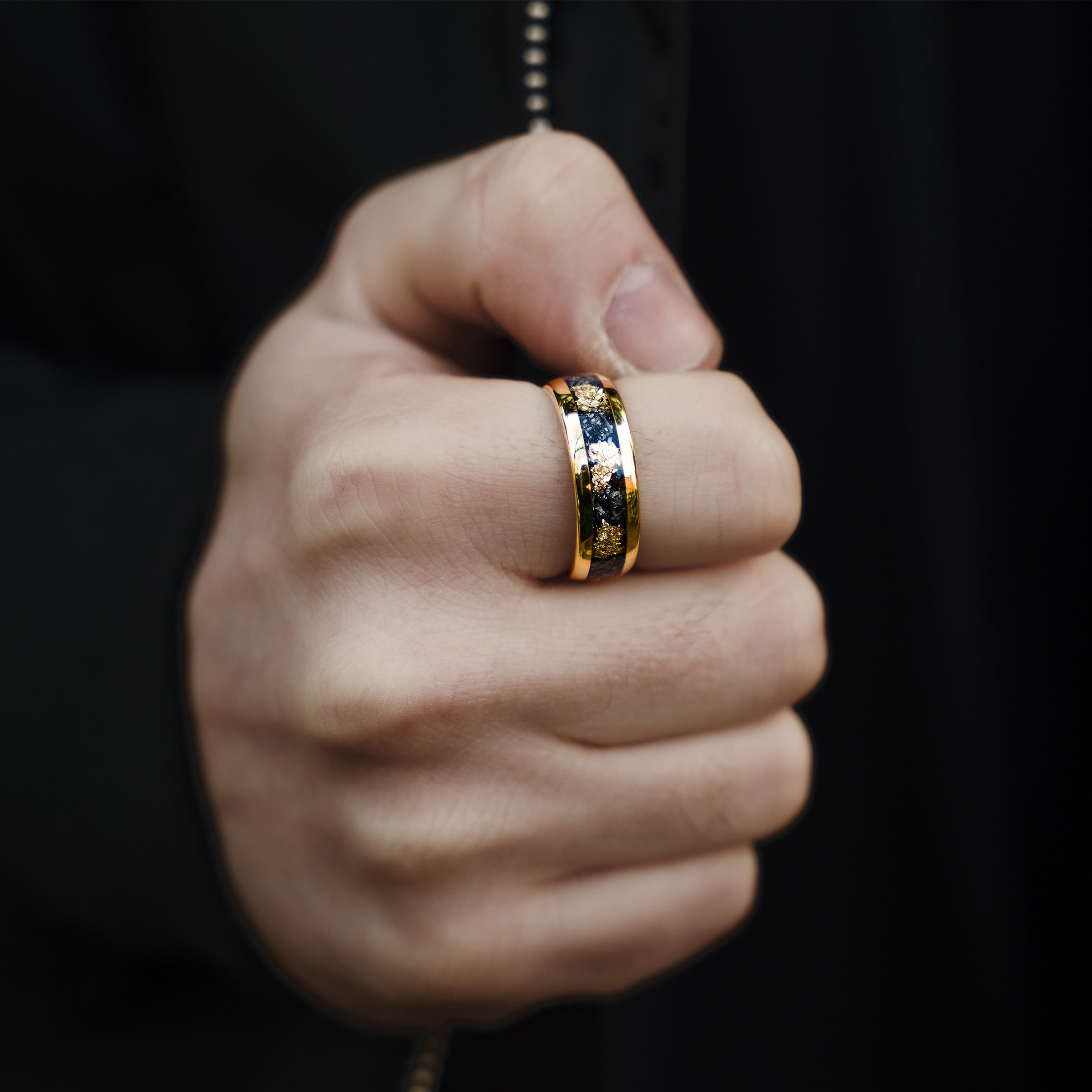 Inlay: Authentic Meteorite for a unique, cosmic touch with Gold 18k Flakes