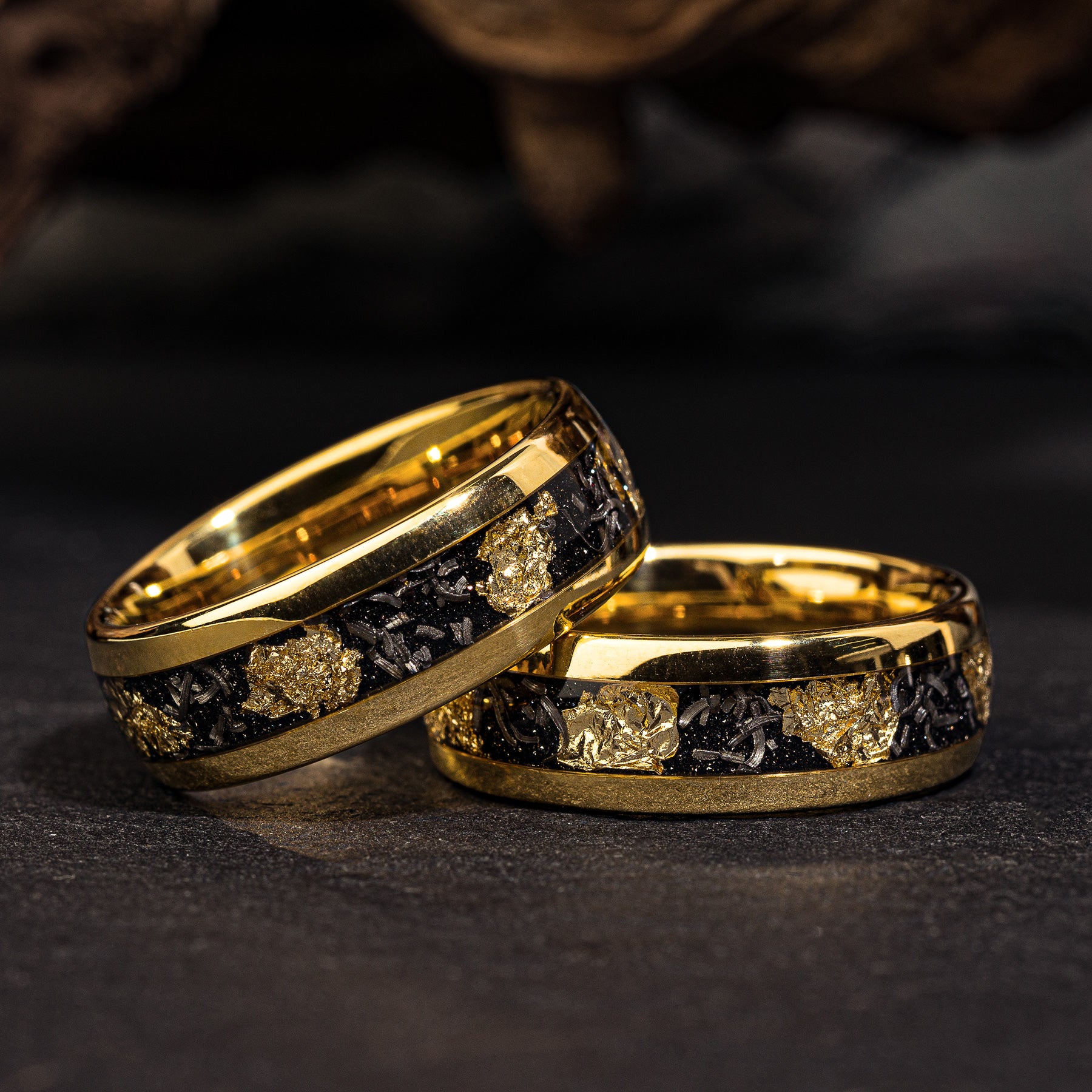 "Element of Gold" Yellow Tungsten Ring With Gold Flakes and Meteorite 8 mm