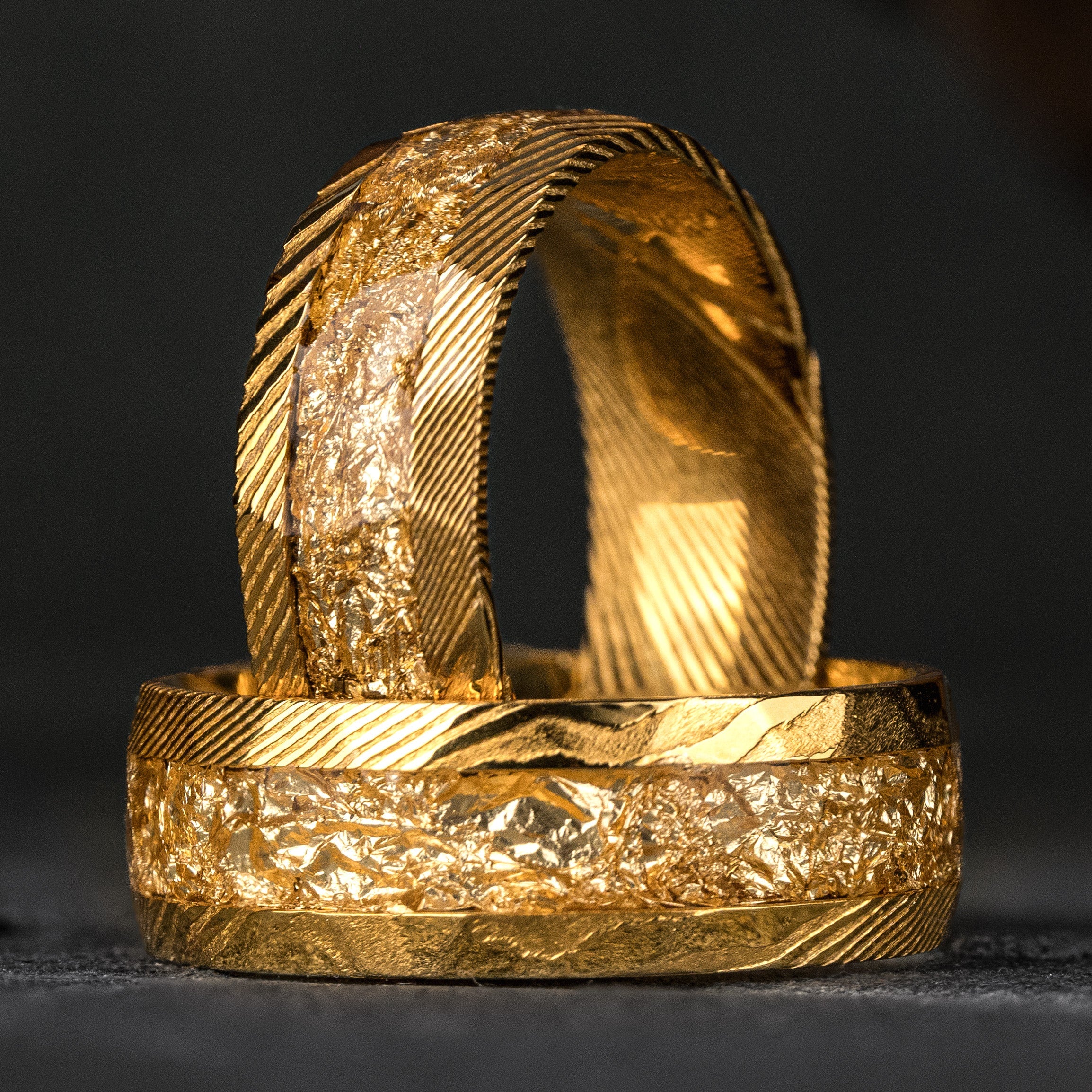 "Yellow Galaxy" Yellow Damascus Ring with Gold 18K Inlay