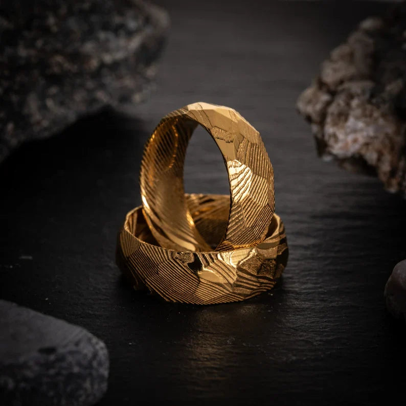 "Yellow Prince" Yellow Damascus Hammered Ring 8 mm