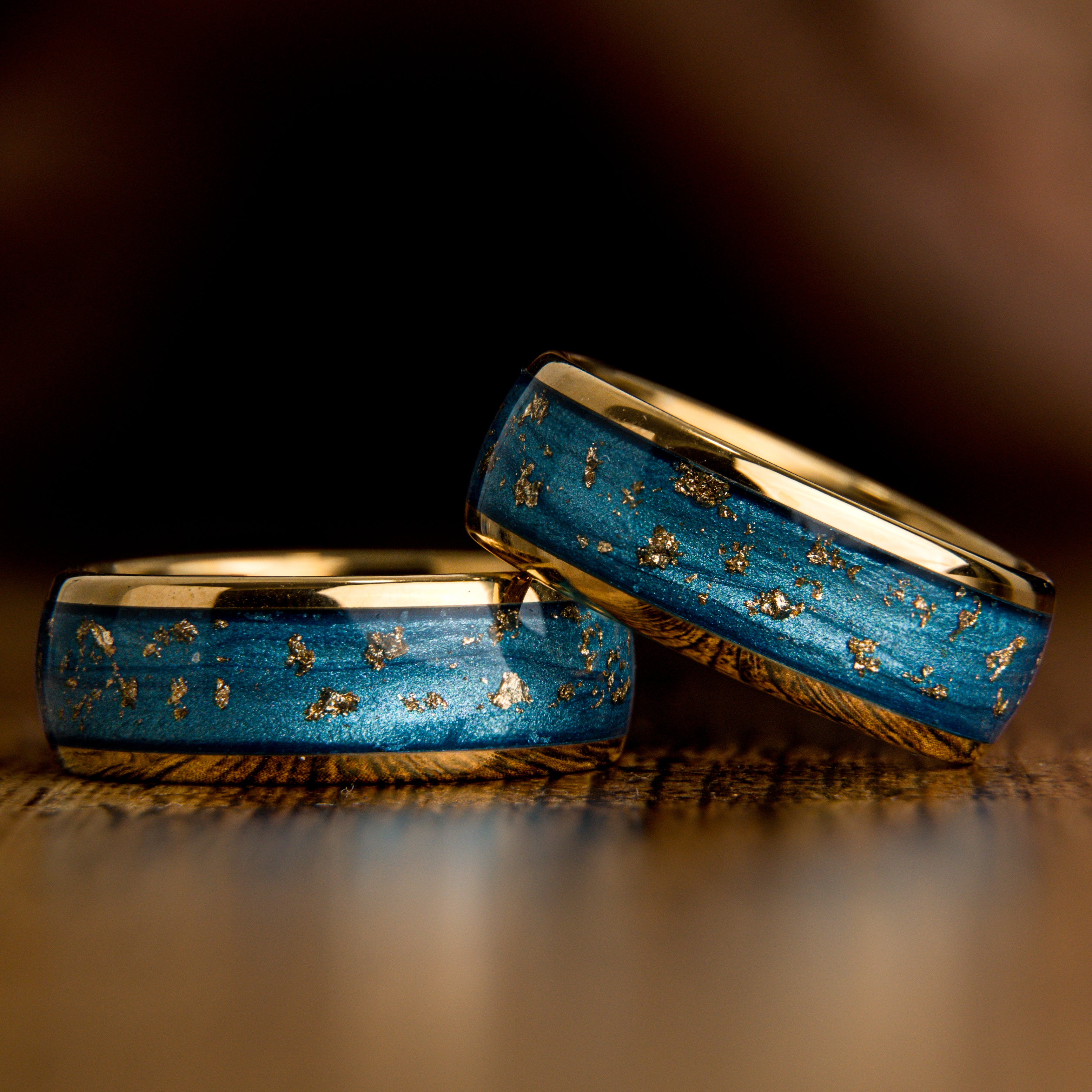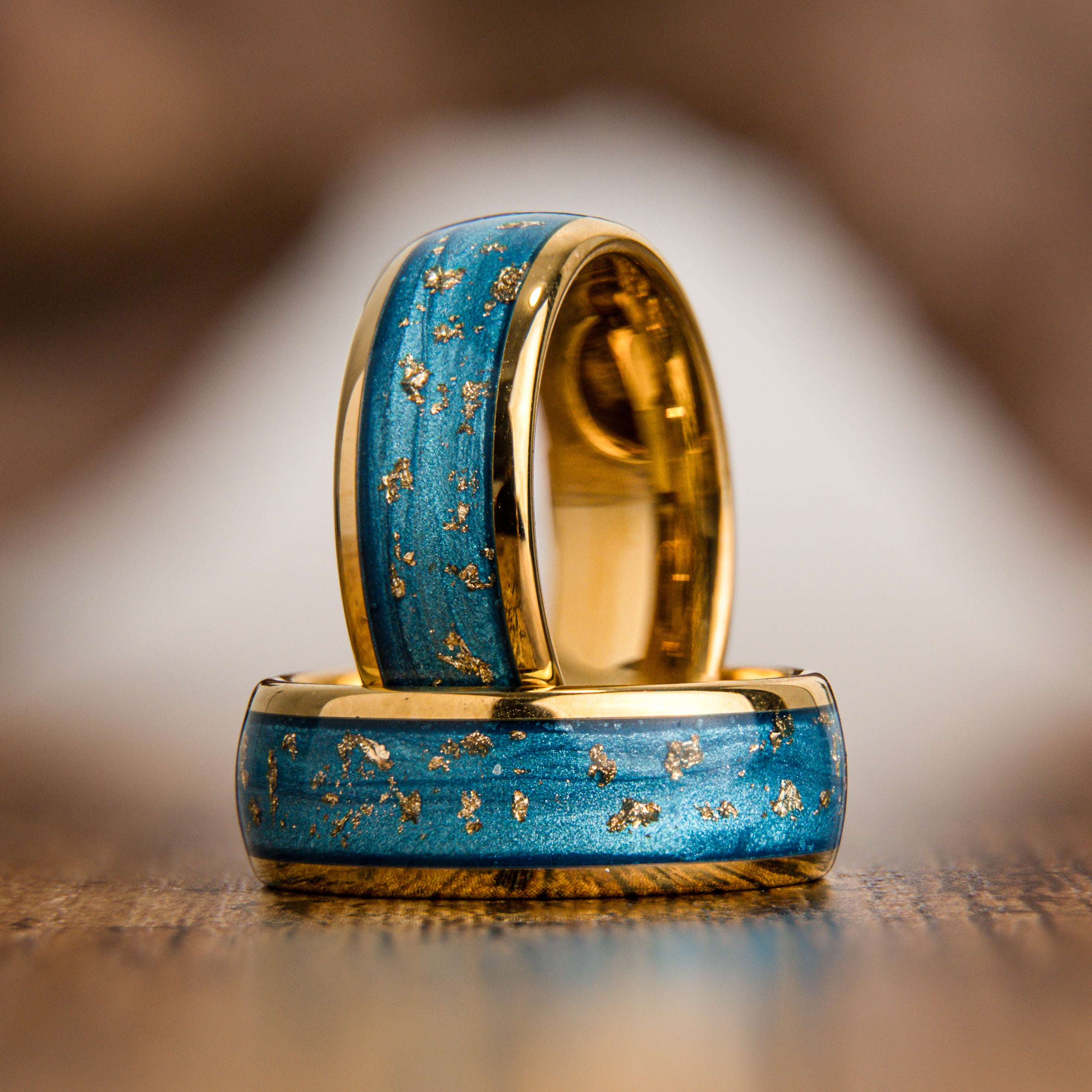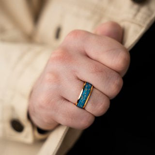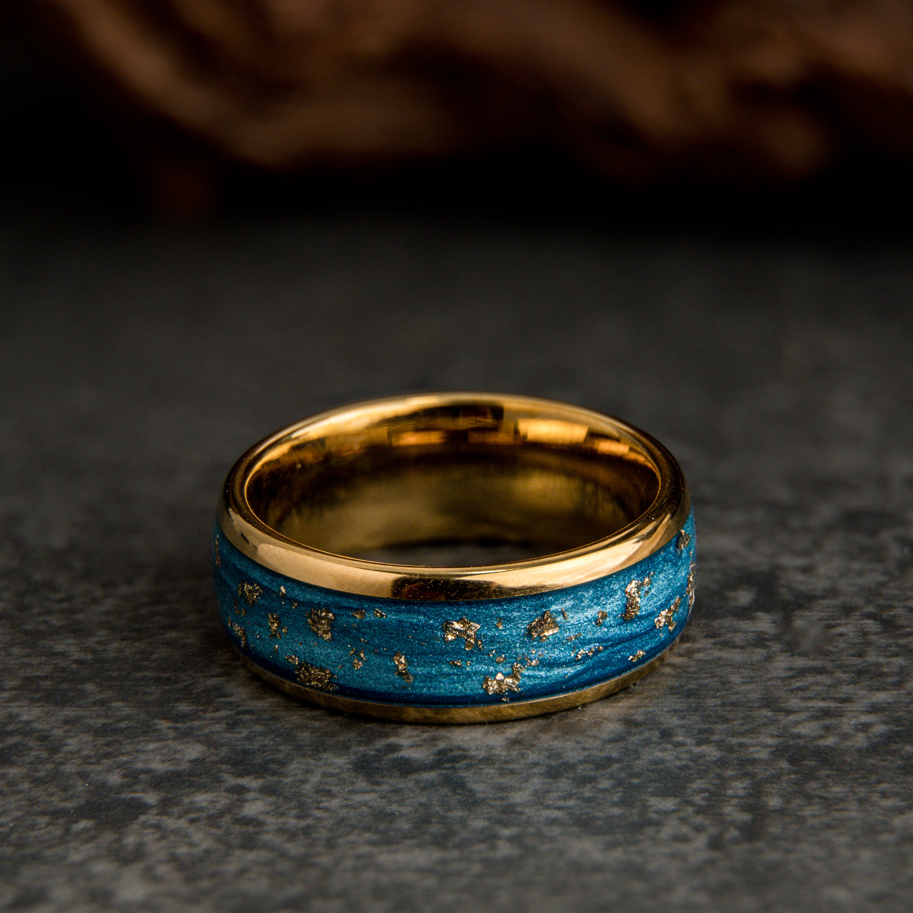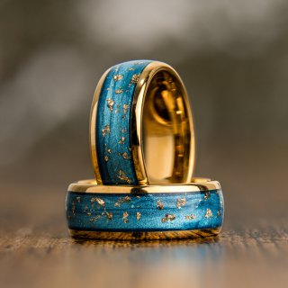 "Blue Eyes" Yellow Tungsten Ring with Gold Flakes 8 mm