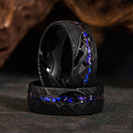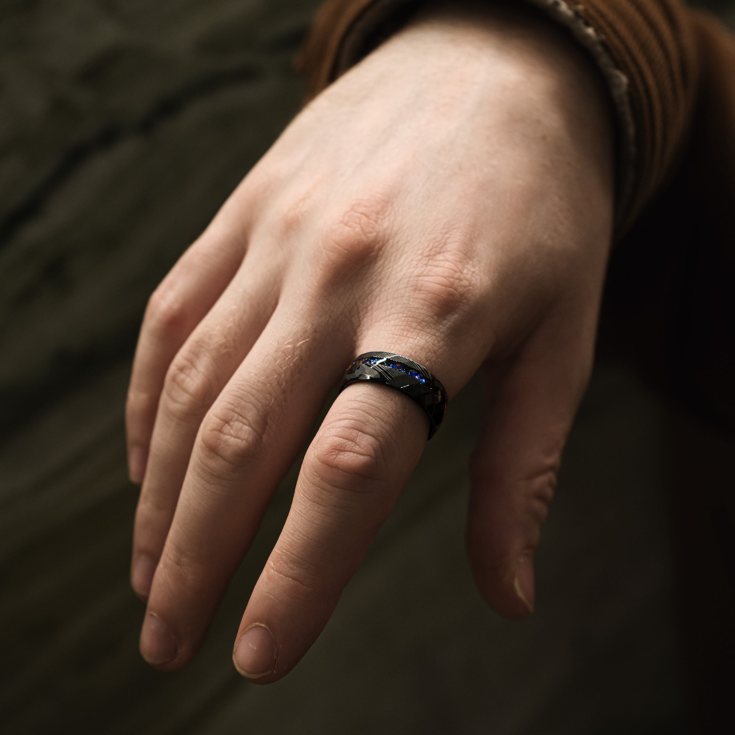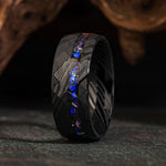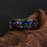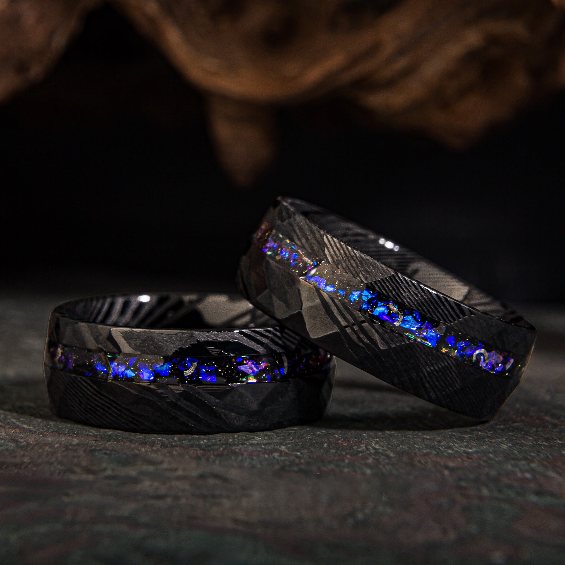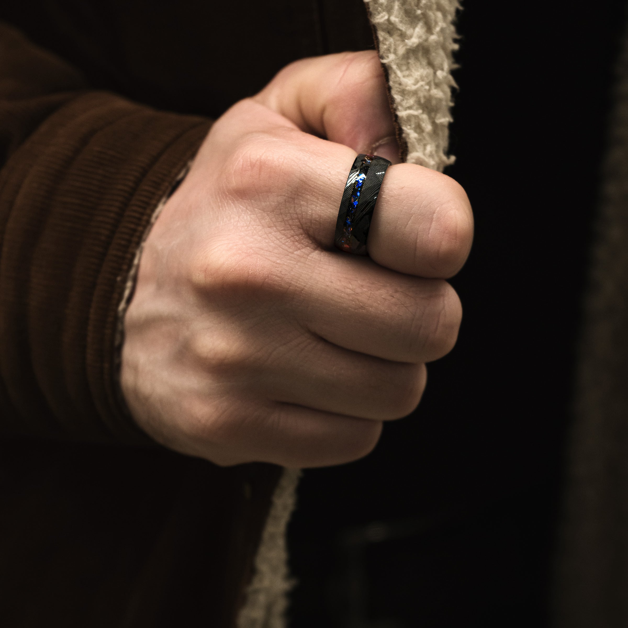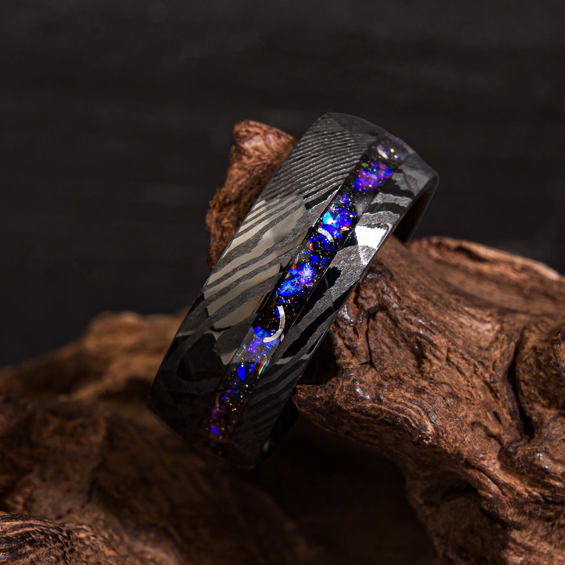 "Blue Space" Damascus Ring with Blue Opal 8 mm