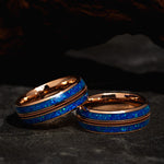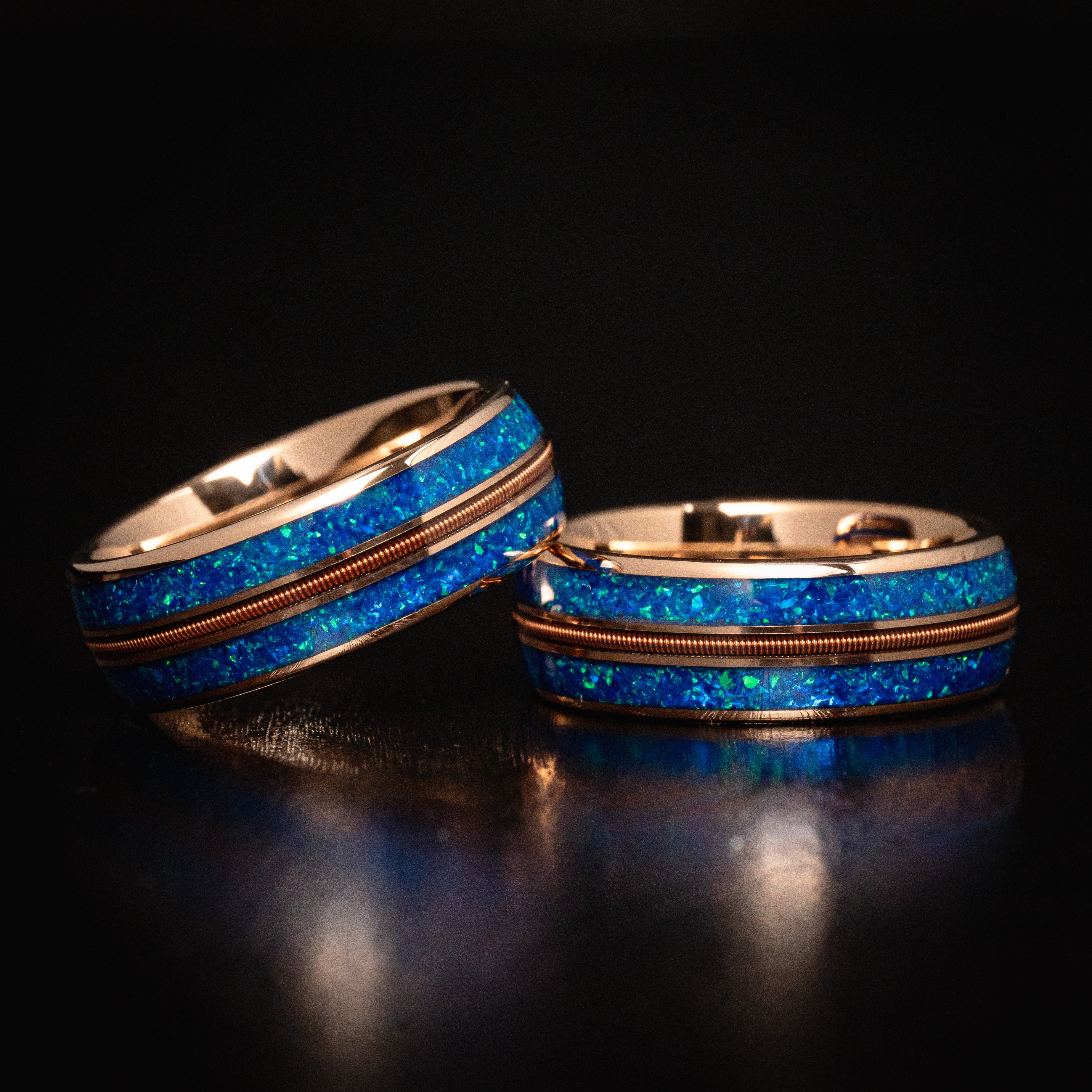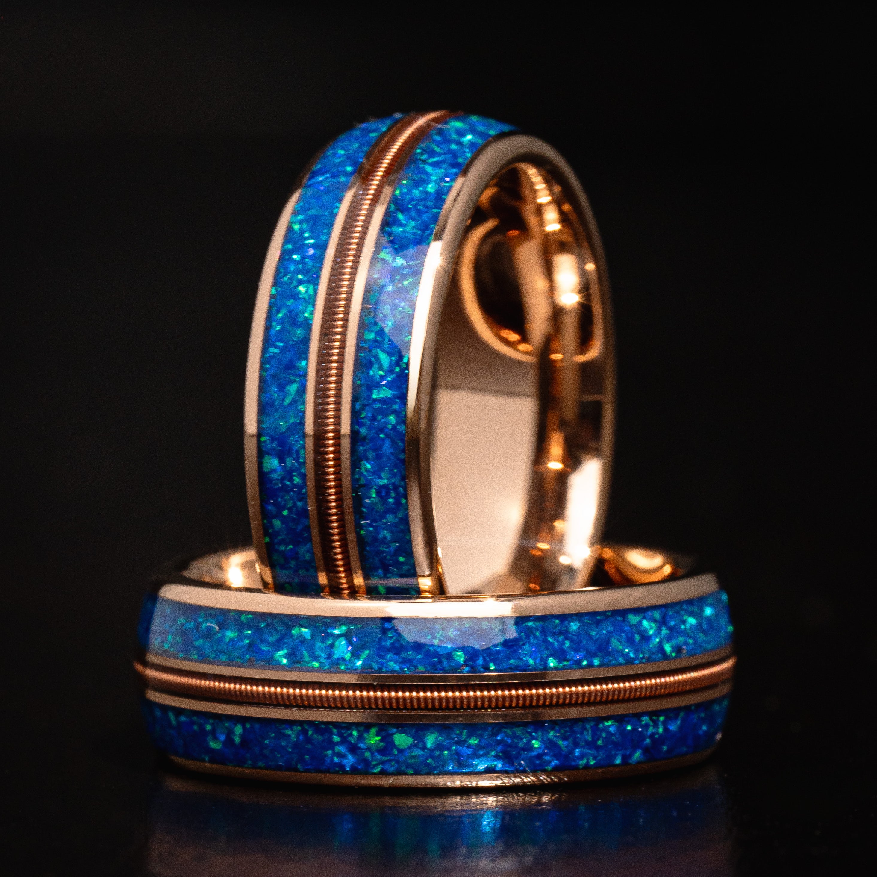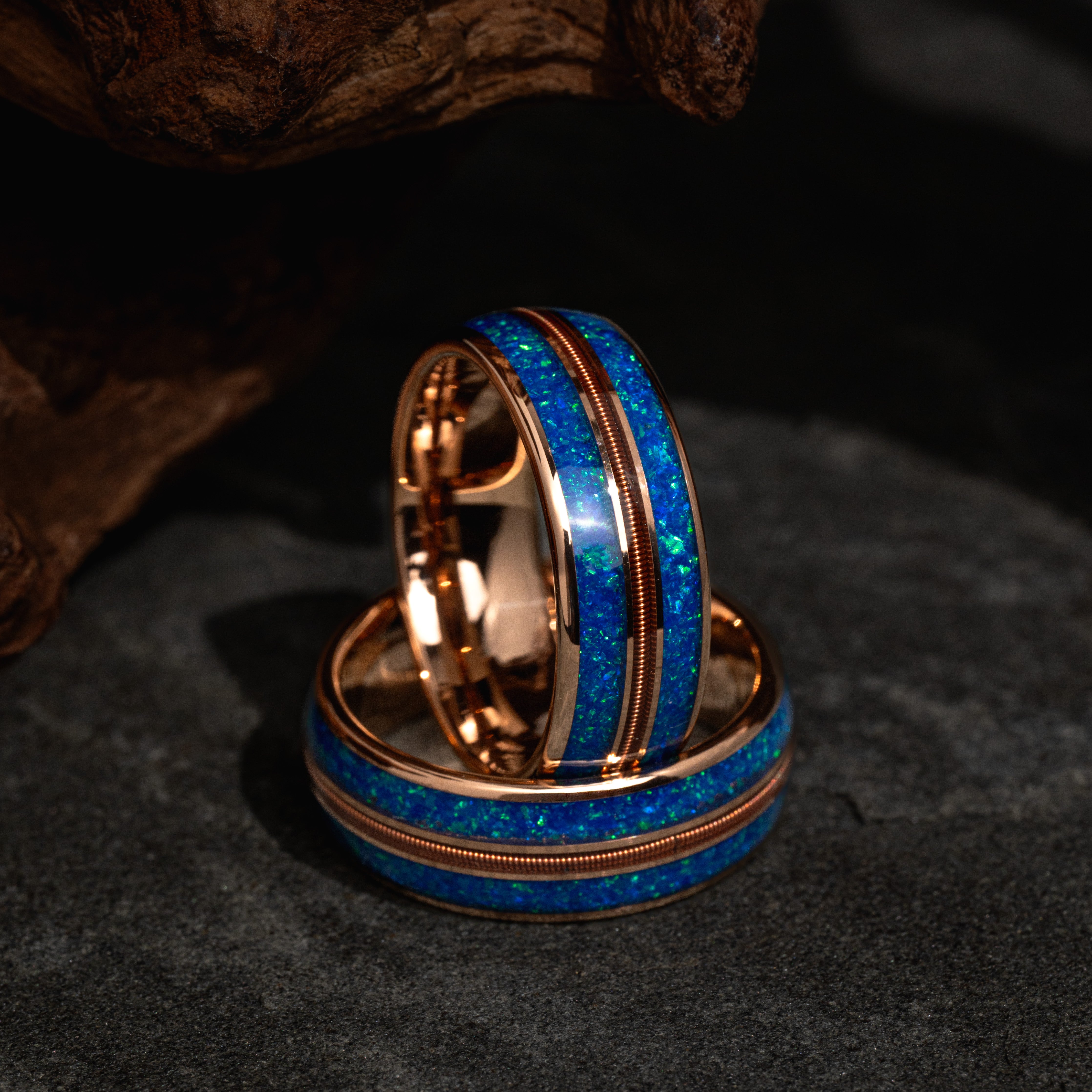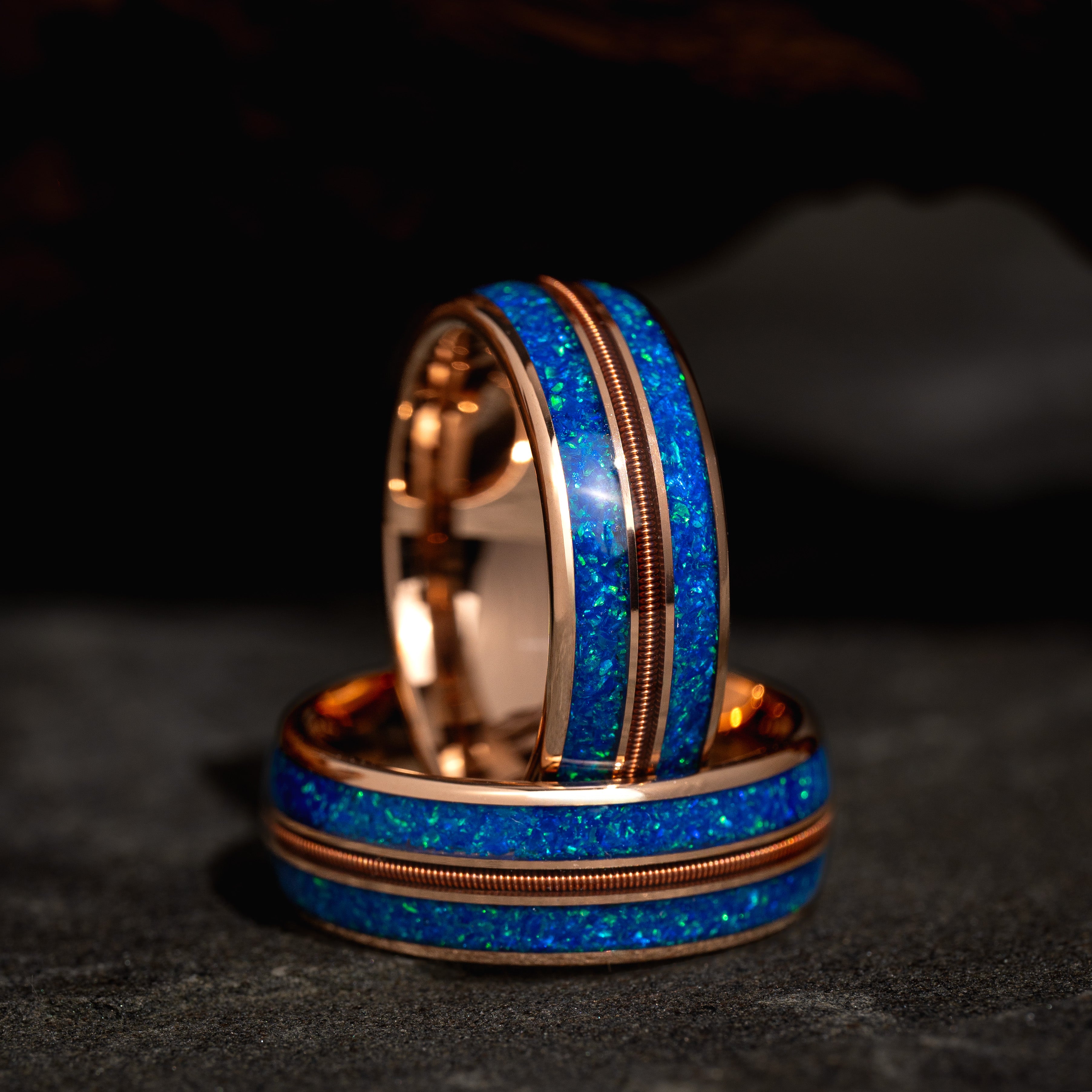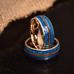 "Blue String" Rose Tungsten Ring with Blue Opal Inlay 8 mm