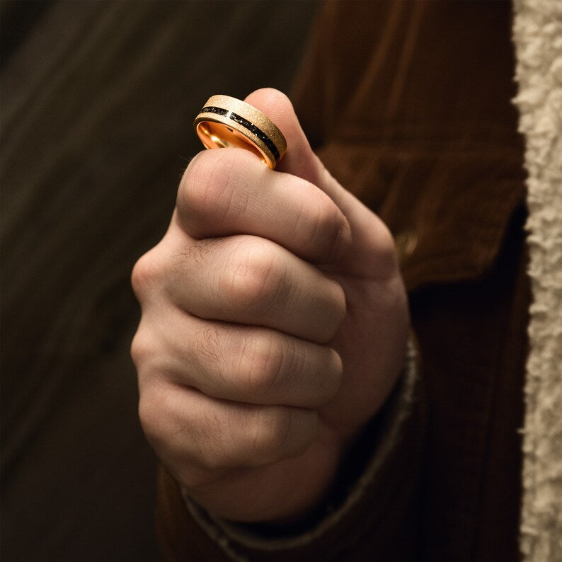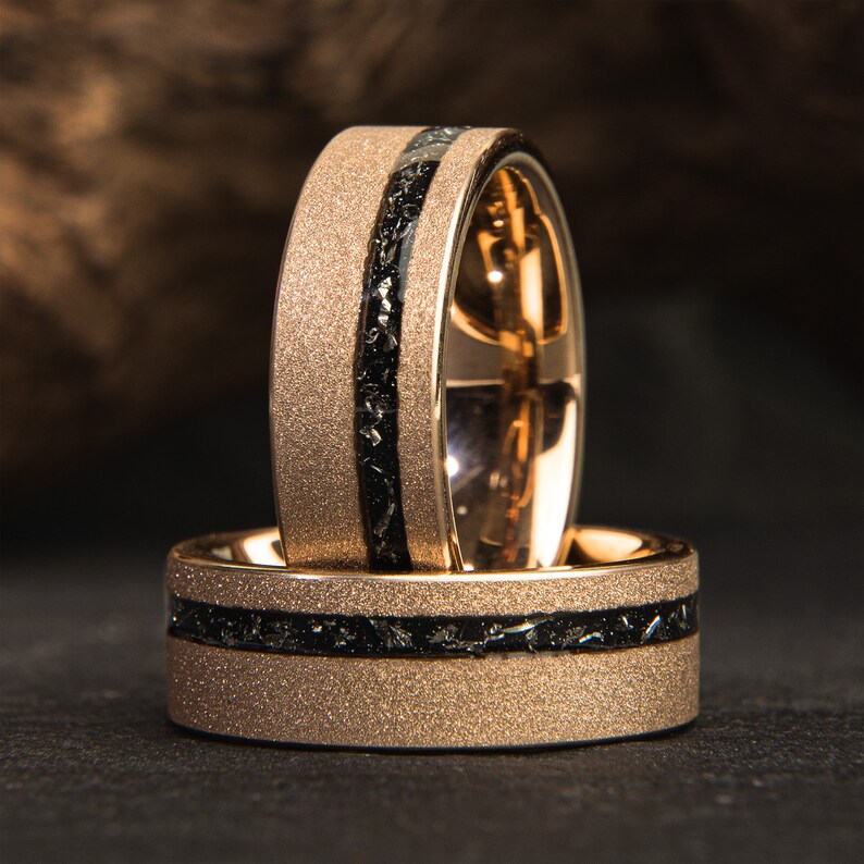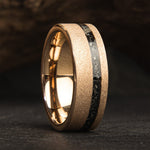"Egyptian God" Yellow Tungsten with Meteorite Inlay 8 mm