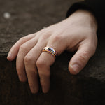 Tungsten is an ultra-dense metal with exceptional hardness and scratch resistance, commonly used in high-performance applications. This ring integrates 18K gold-filled accents, authentic meteorite inlay containing extraterrestrial iron-nickel alloys.