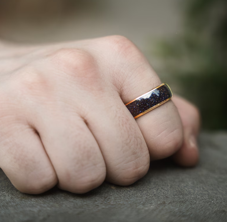 "Galaxy" Tungsten Ring with Sandstone 8 mm