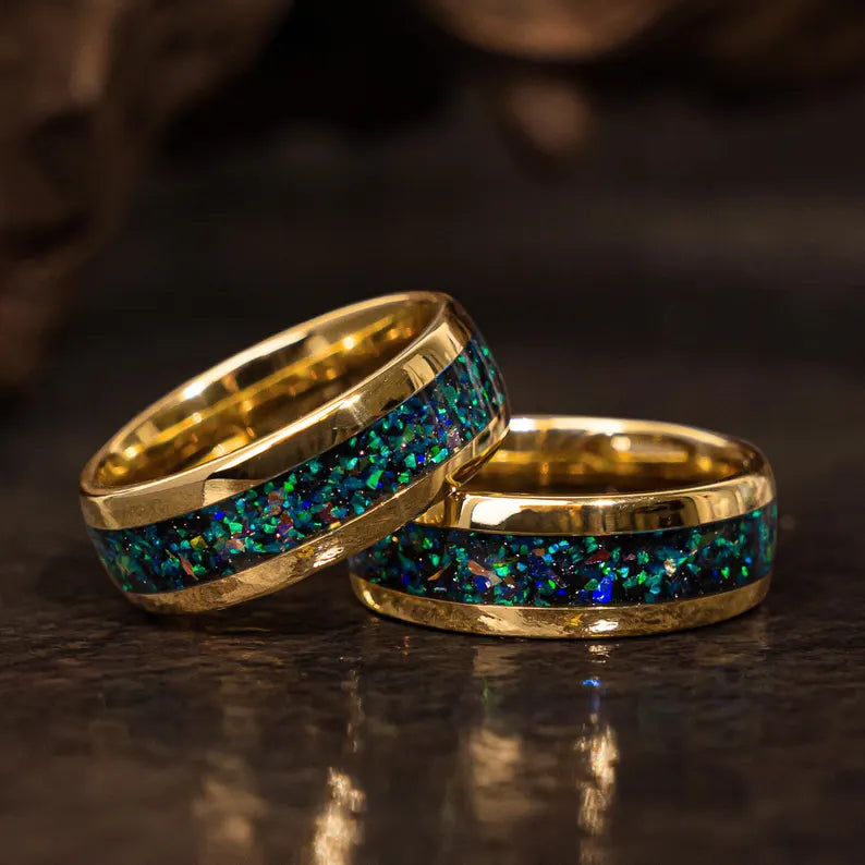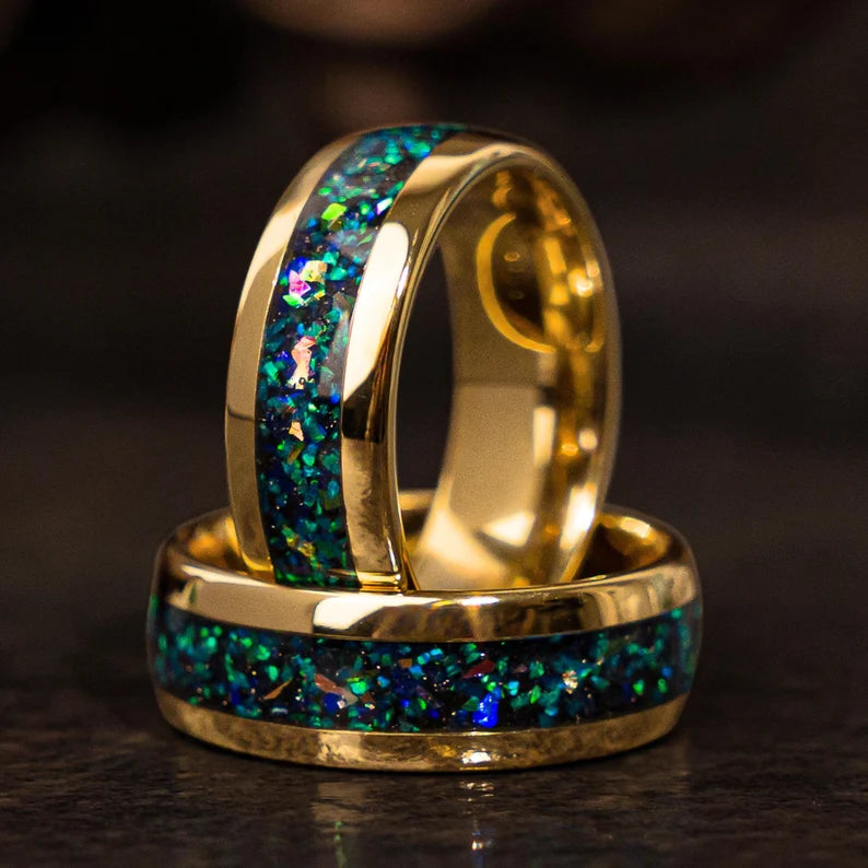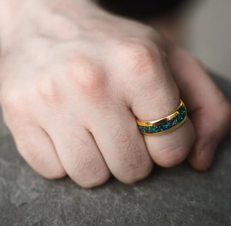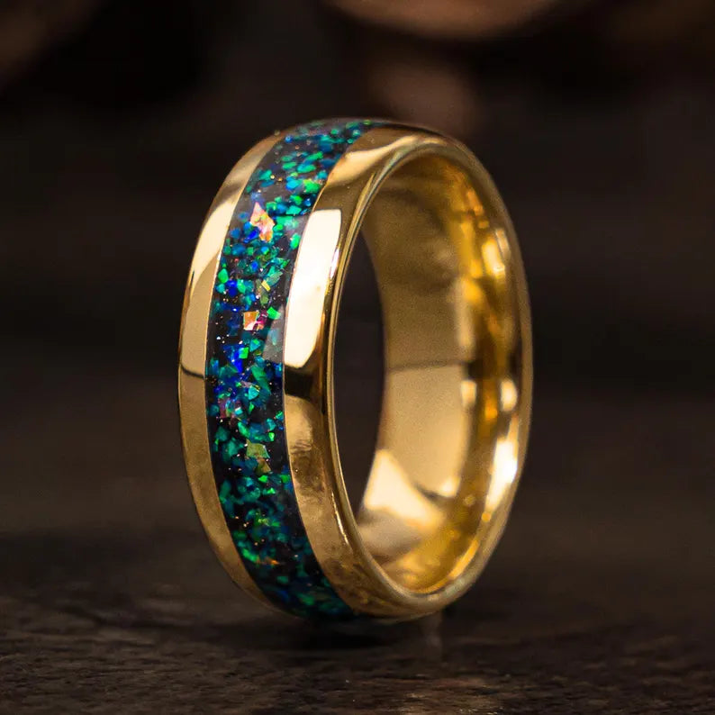 "Golden Fox" Yellow Tungsten Ring with Opal Inlay 8 mm