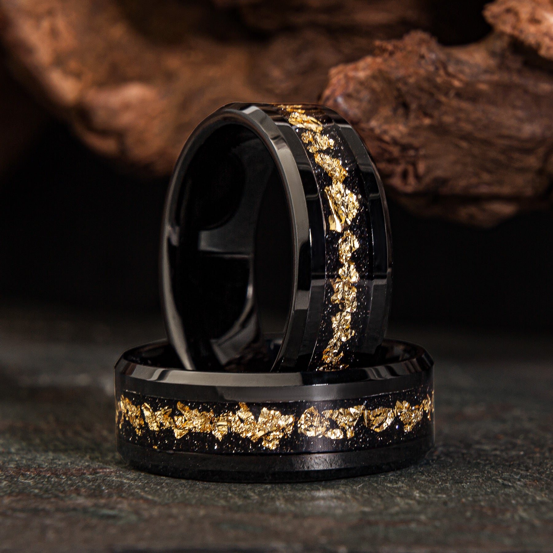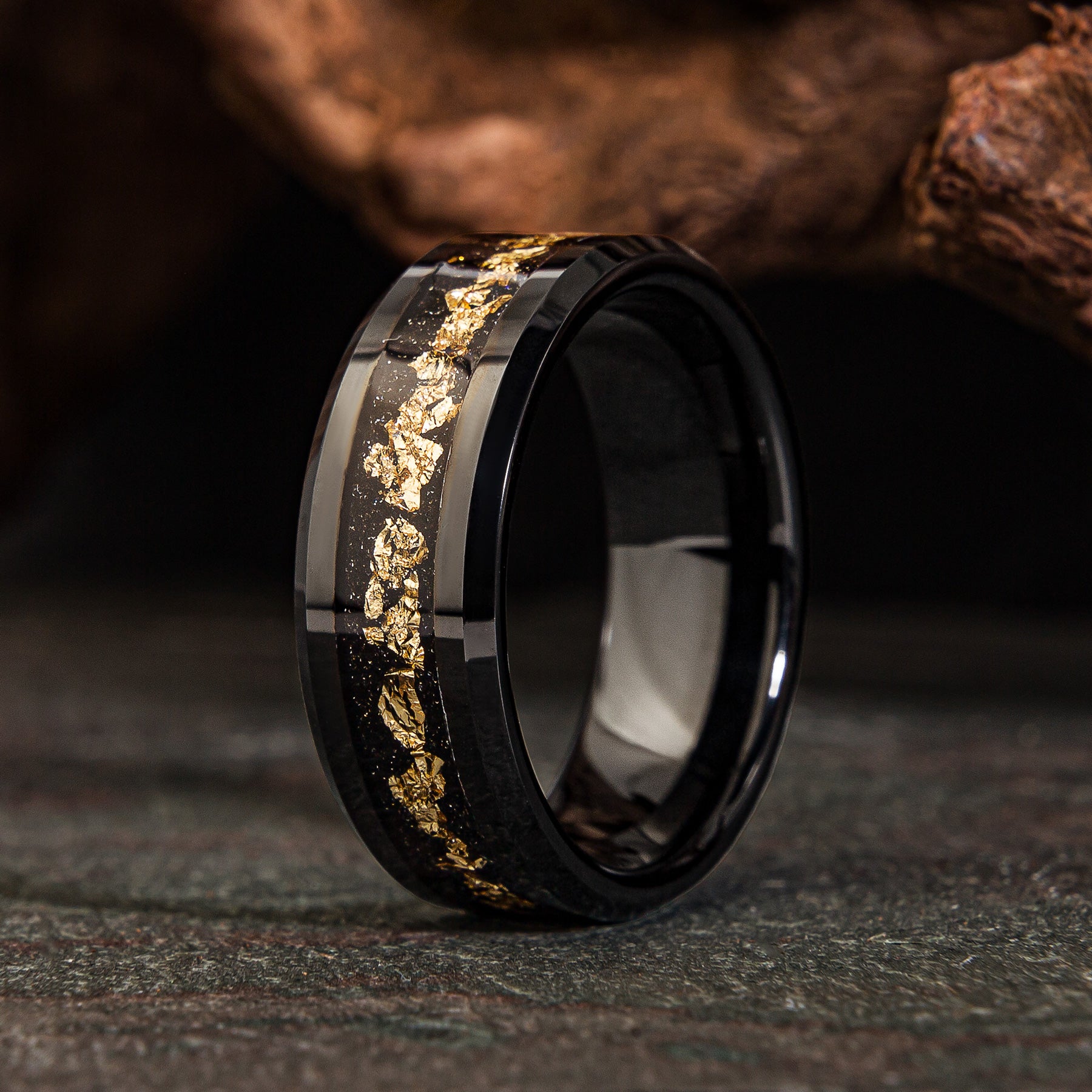 "Golden River" Tungsten Ring with Gold 18k Inlay 8 mm