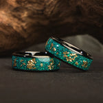 "Green Devil" Tungsten Ring with Green Opal and Gold 18k Leaf 8 mm