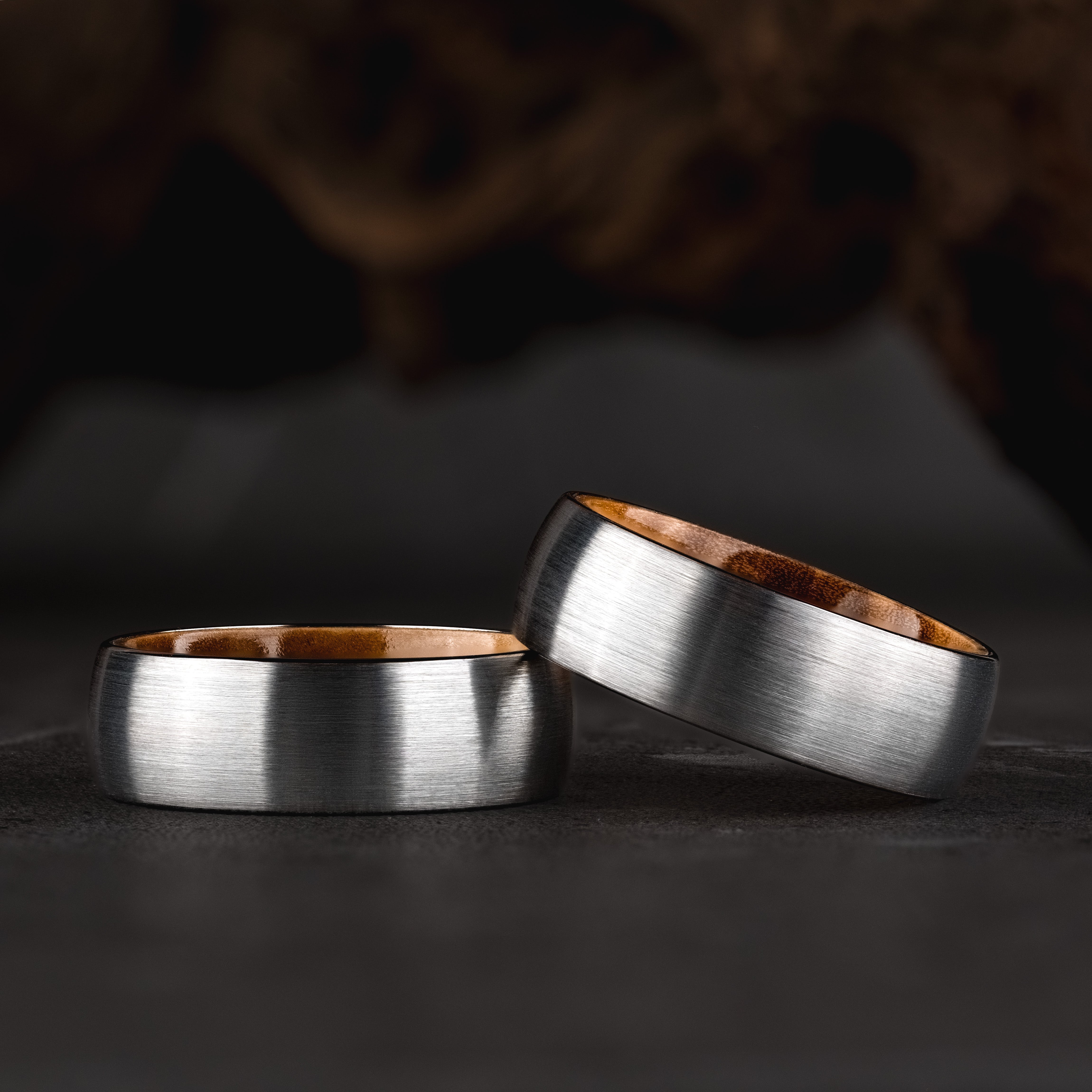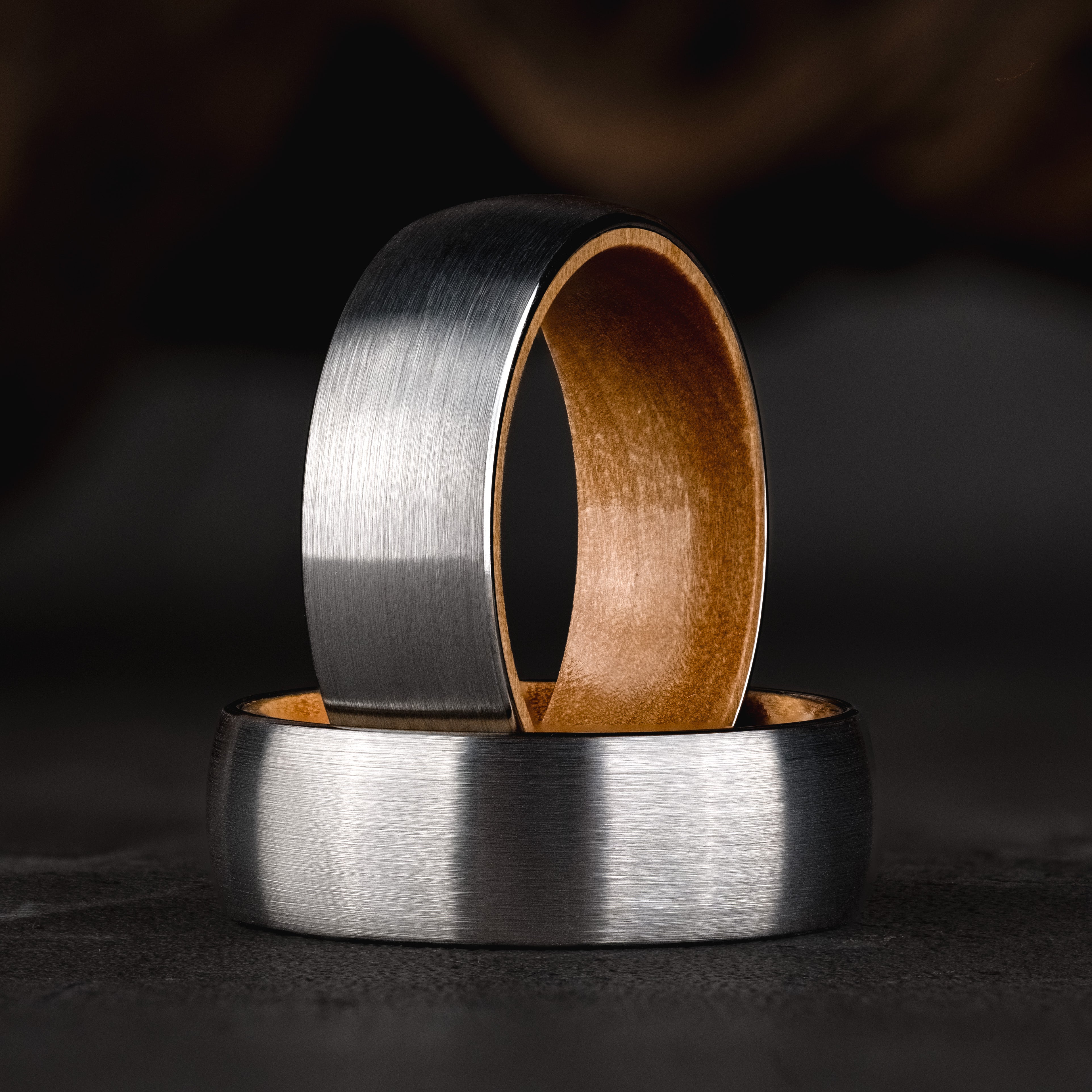 "Silver Hill" Tungsten Mens Ring with Koa Wood