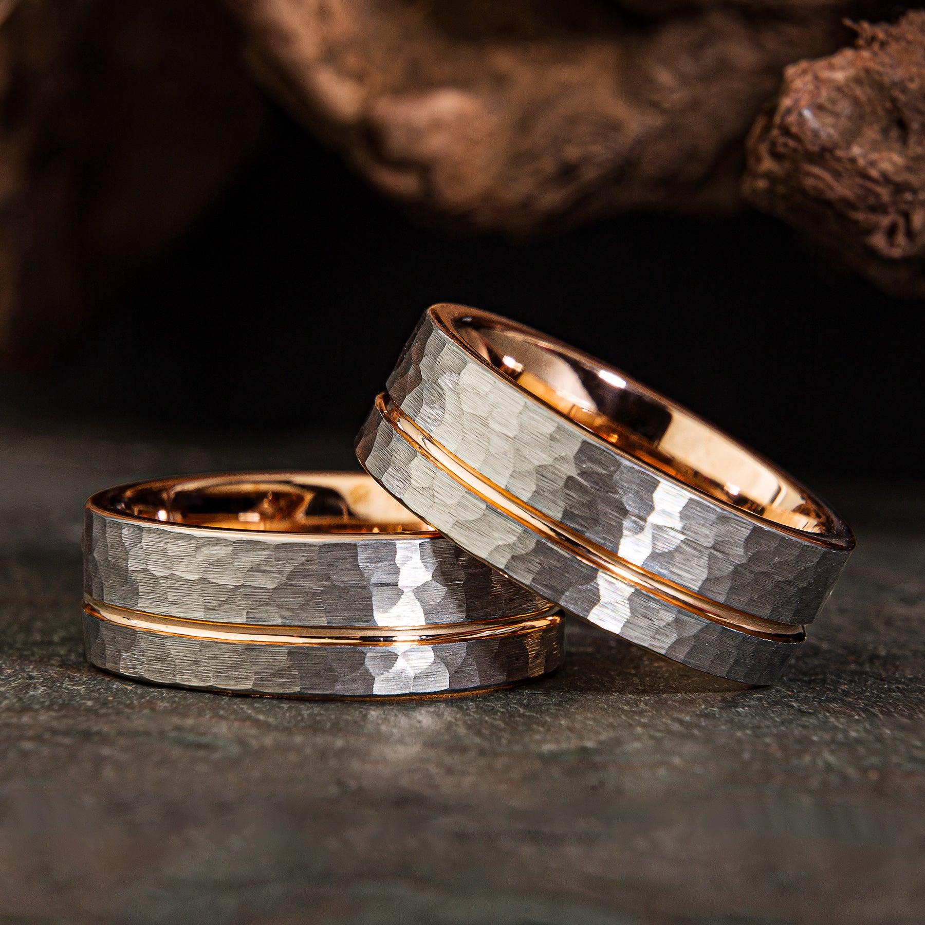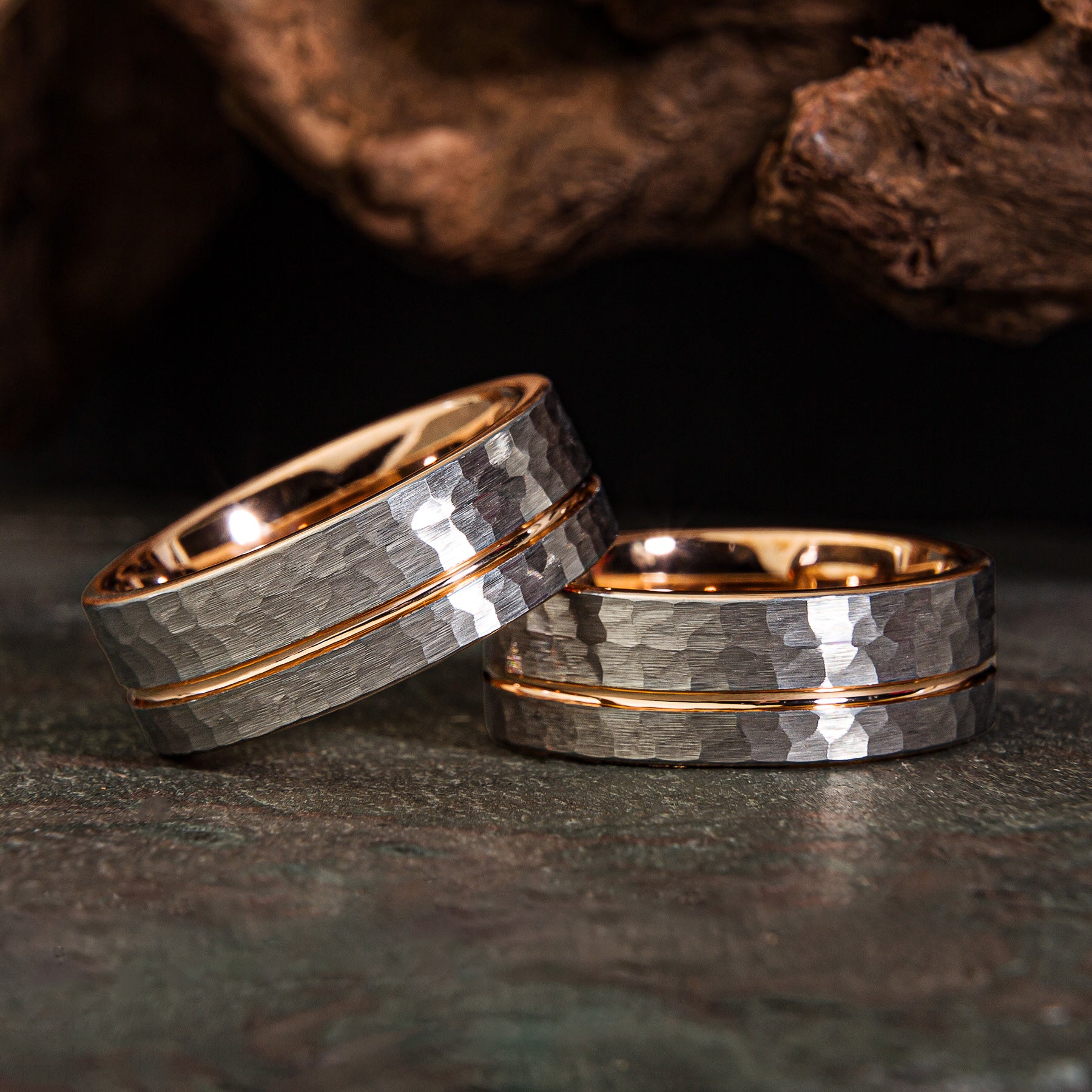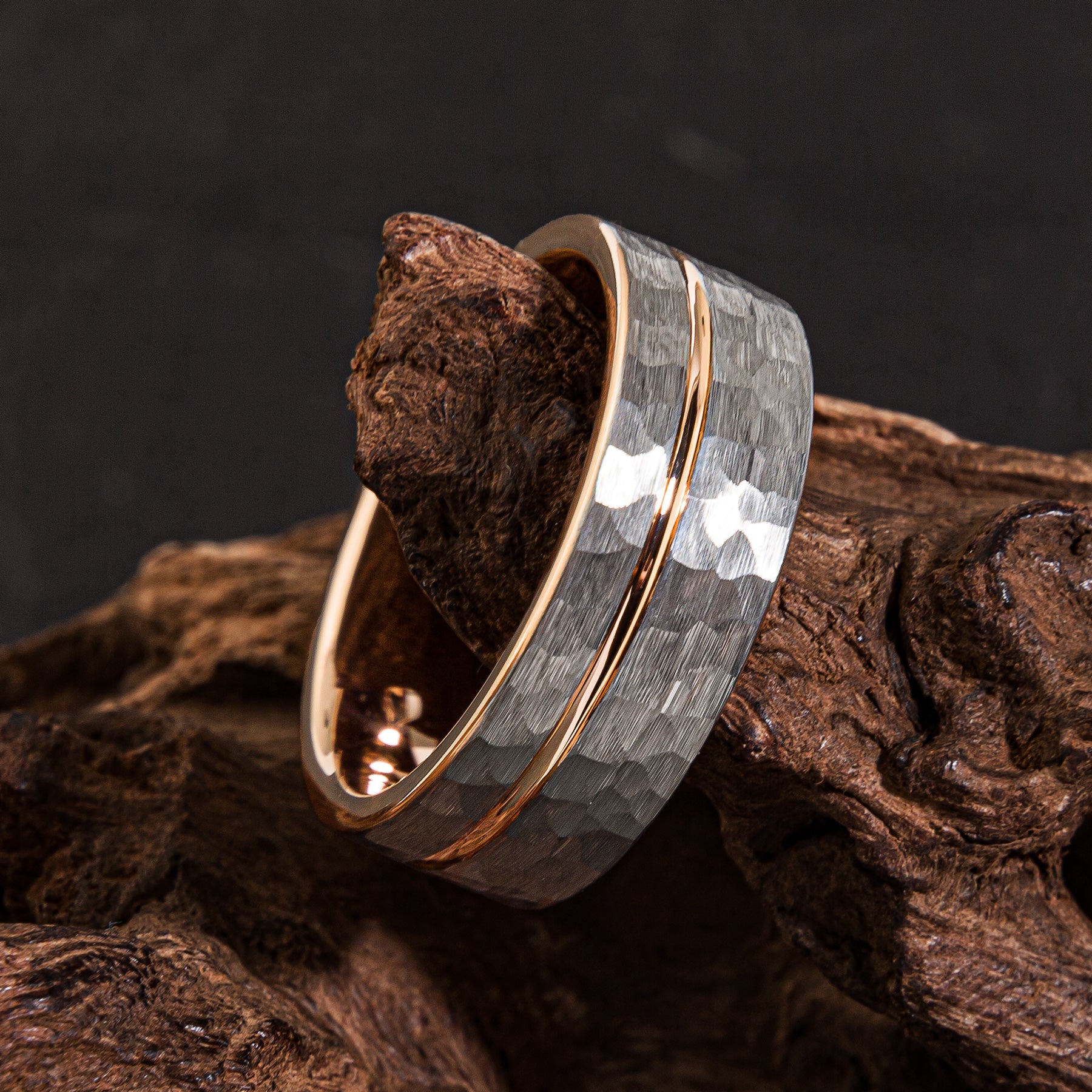 "Yellow Bear" Hammered Tungsten Ring 8 mm