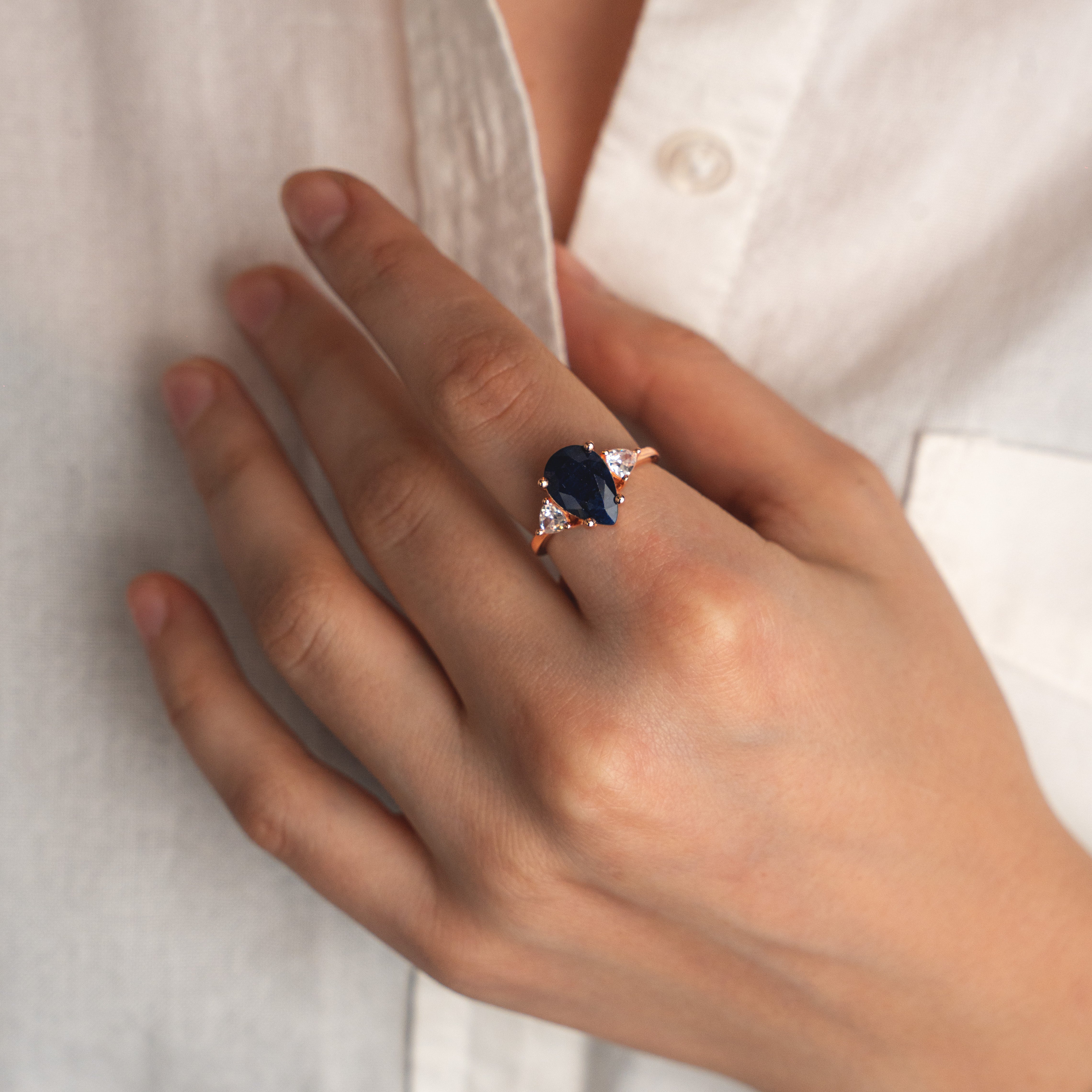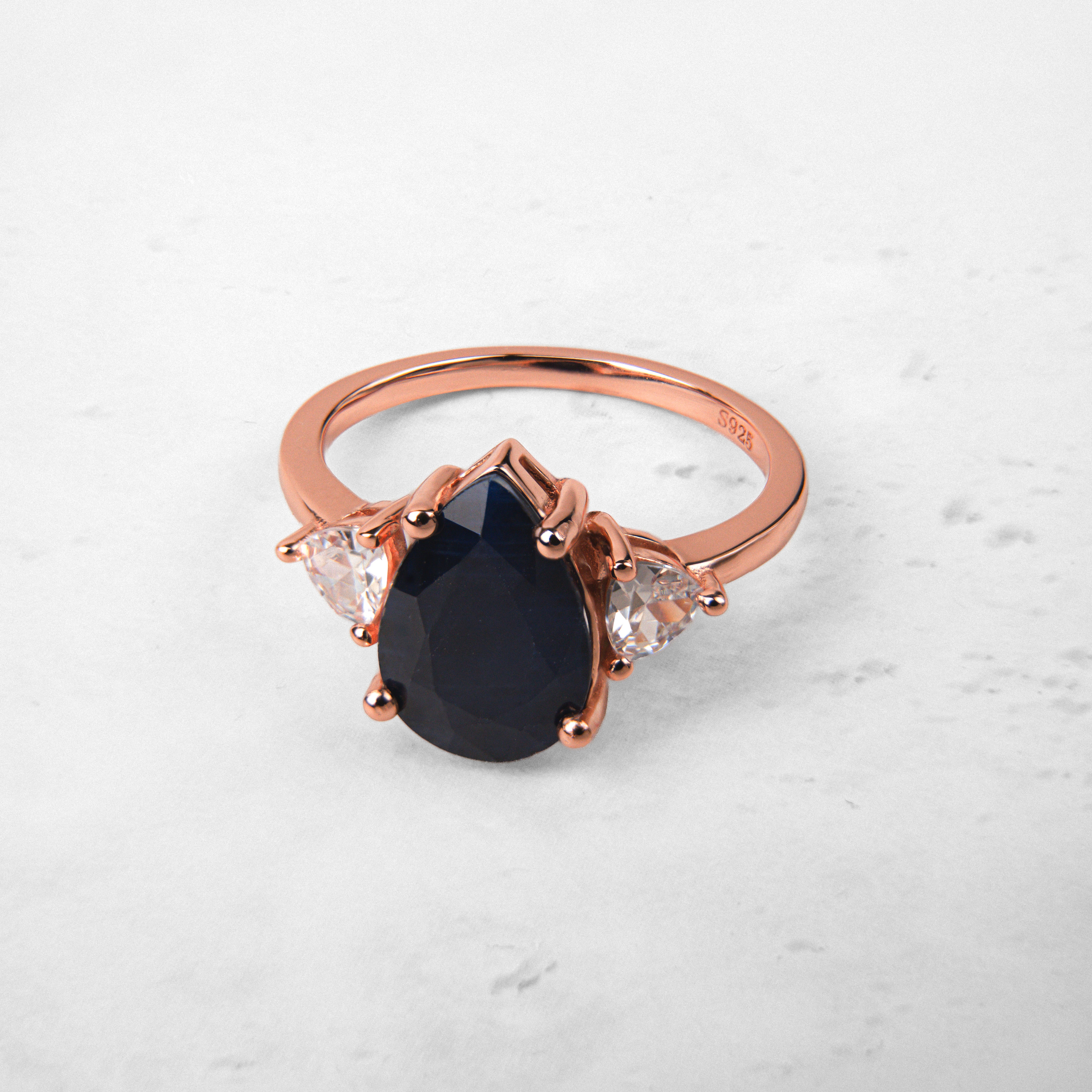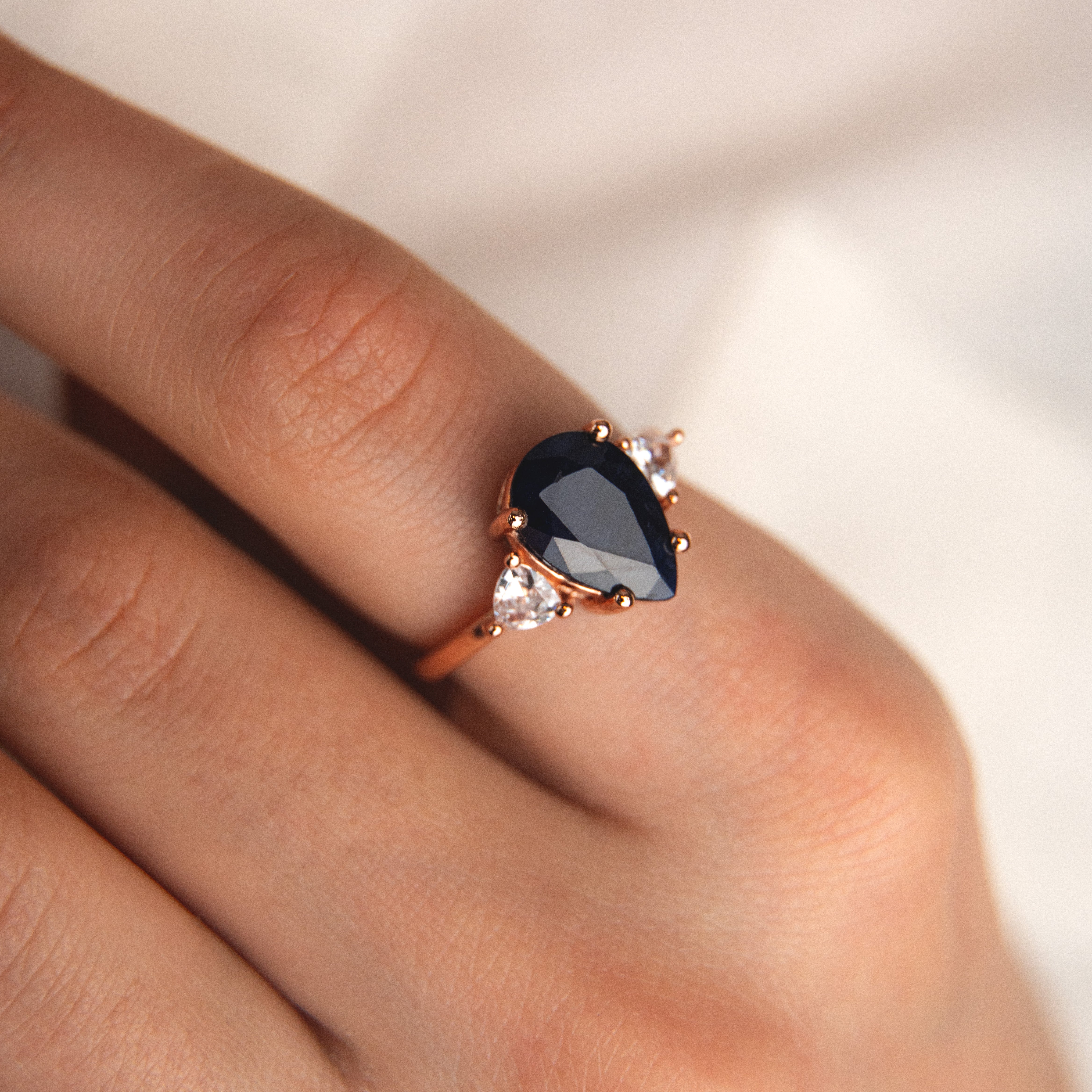 "Dark Night" Sapphire Women's Sterling Silver 925 Gold 18K Filled Ring