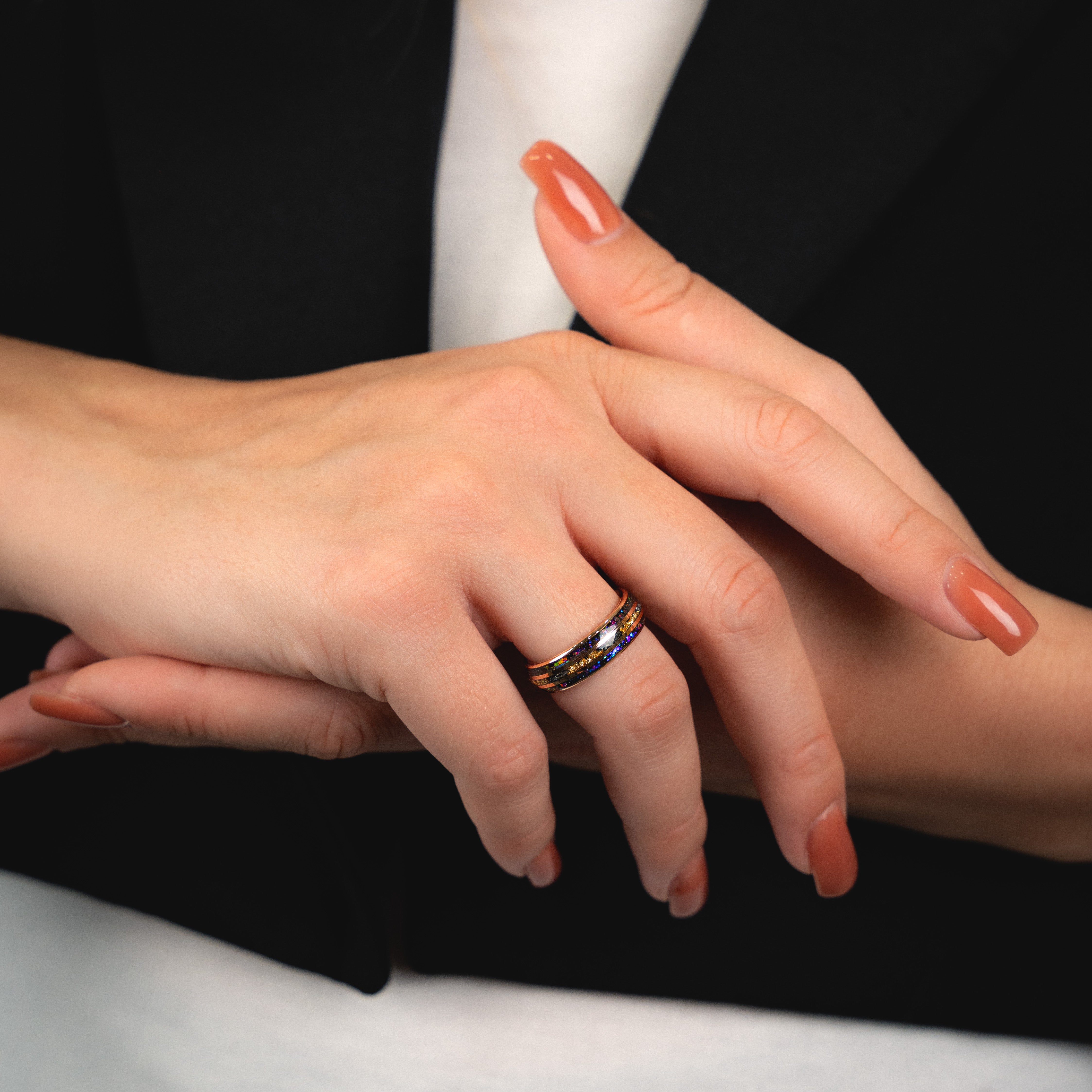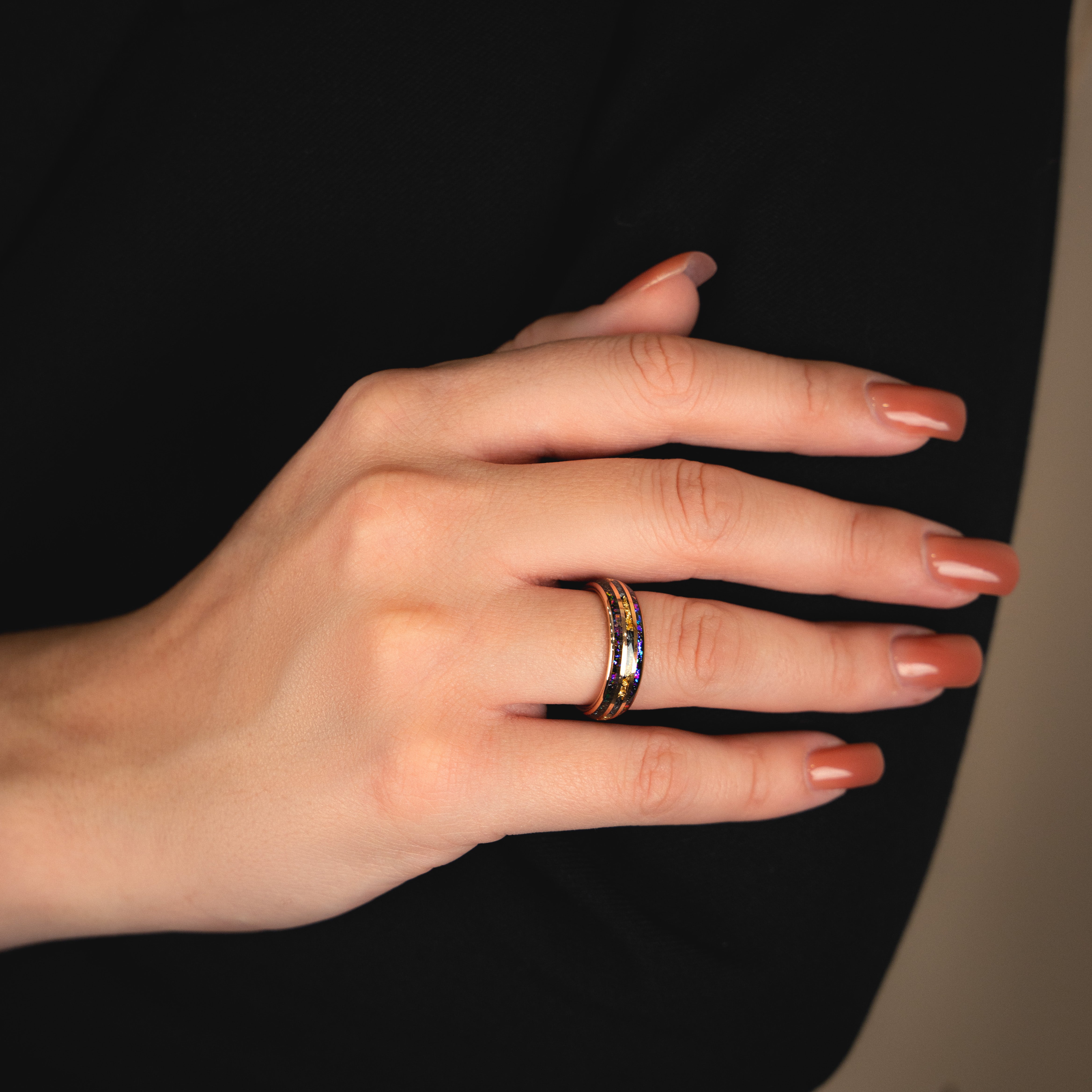 Yes, our rings are made from high-quality materials such as tungsten, damascus, opal, gold and meteorite that do not leave green marks, do not change color, do not break and you can wear them 24/7