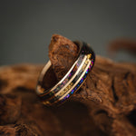 Tungsten is a tough and durable metal, highly resistant to scratches and everyday wear, making it ideal for long-lasting jewelry. When combined with 18K gold-filled detailing, it offers a luxurious look with added strength. This ring is finished with solid 18K gold leaf accents, bringing a unique and elegant touch to its bold design.